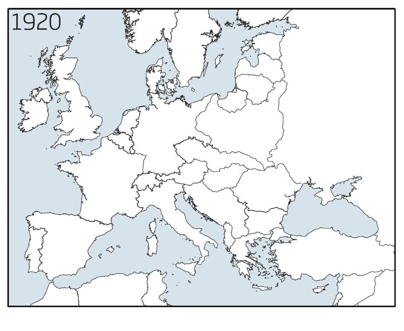بحلول عام 1918، مع تقطيع أوصال الإمبراطوريات الأوروبية المتعددة الجنسيات مثل هابسبورغ في الحرب العالمية الأولى، أُعيد رسم الحدود الدولية الأوروبية إلى حدٍ كبيرٍ على طول الخطوط الثقافية واللغوية. في أوروبا على الأقل، كانت الدولة القومية المعيار الجديد.
