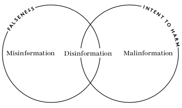 - Disinformation: معلومات كاذبة تُصاغ وتُوزَّع عمداً بقصد الخداع والضرر، كما أسلفنا.